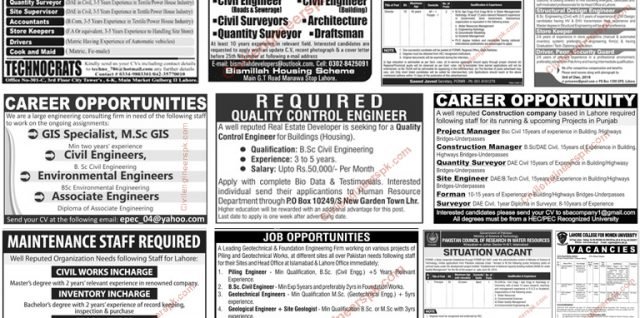 Sunday Jobs Civilengineerspk 20-11-2016