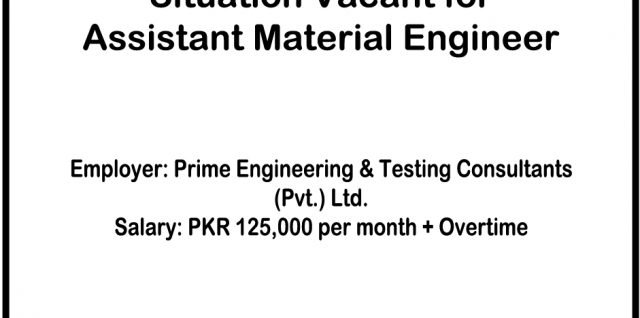 Situation Vacant for Assistant Material Engineer