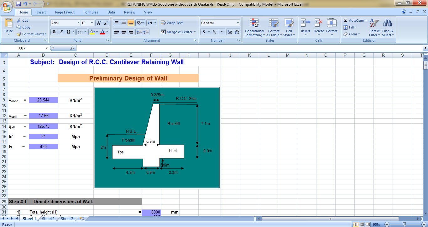 13. RCC Retaining Wall Design Spreadsheet